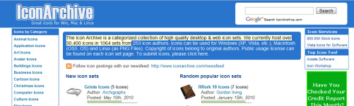 Great selection with nearly 2000 sets at the time of writing, which together total tens of thousands of individual icons. Site also includes a good availability based around the latest web 2.0 properties ideal for use in sidebar web design.